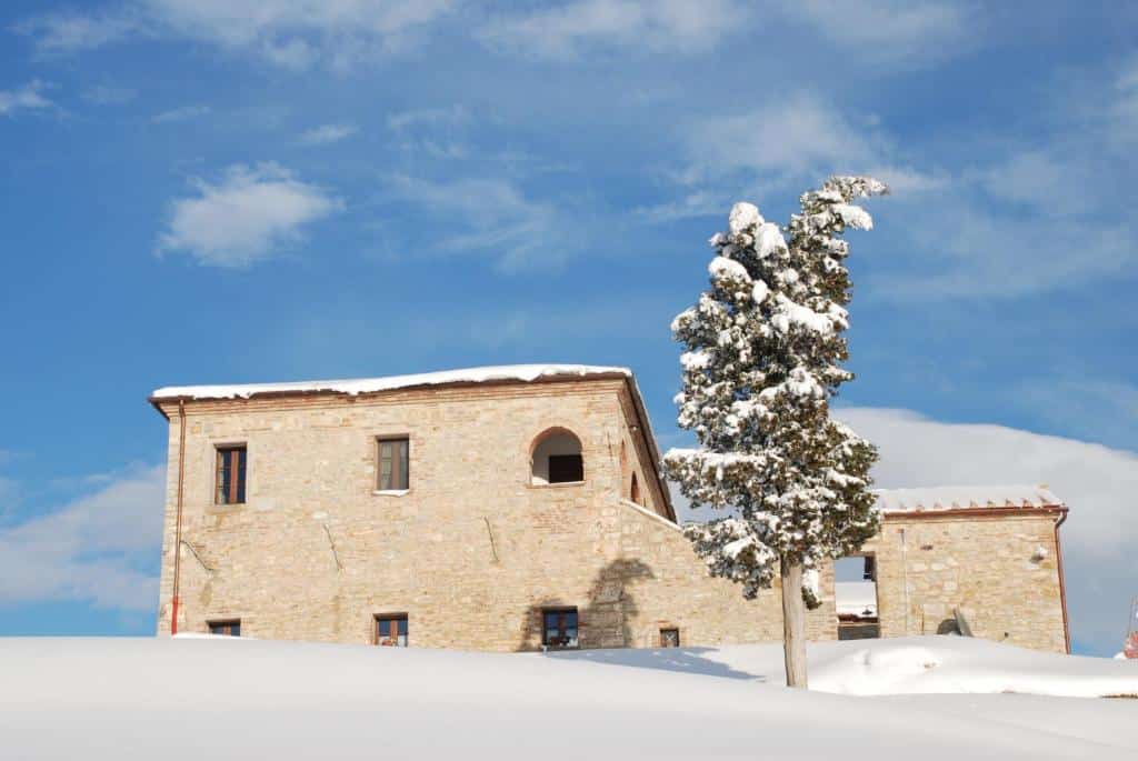 Immaginate un antico podere in pietra serena e travertino, sospeso tra il silenzio del bosco e l’argento degli uliveti. All’