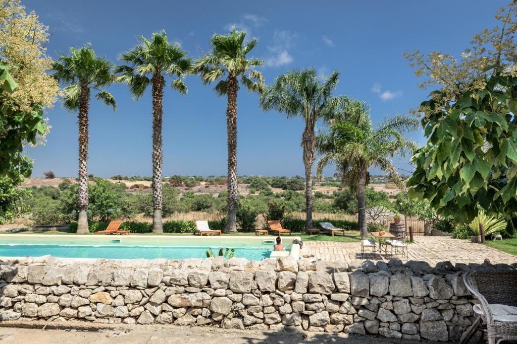 Immagina una masseria ristrutturata con estrema cura, dove la pietra bianca di Modica incornicia giardini che sembrano sculture viventi. Alle