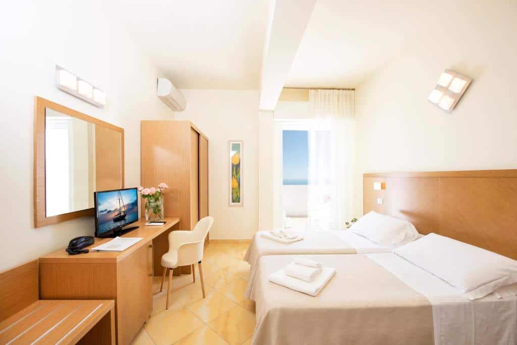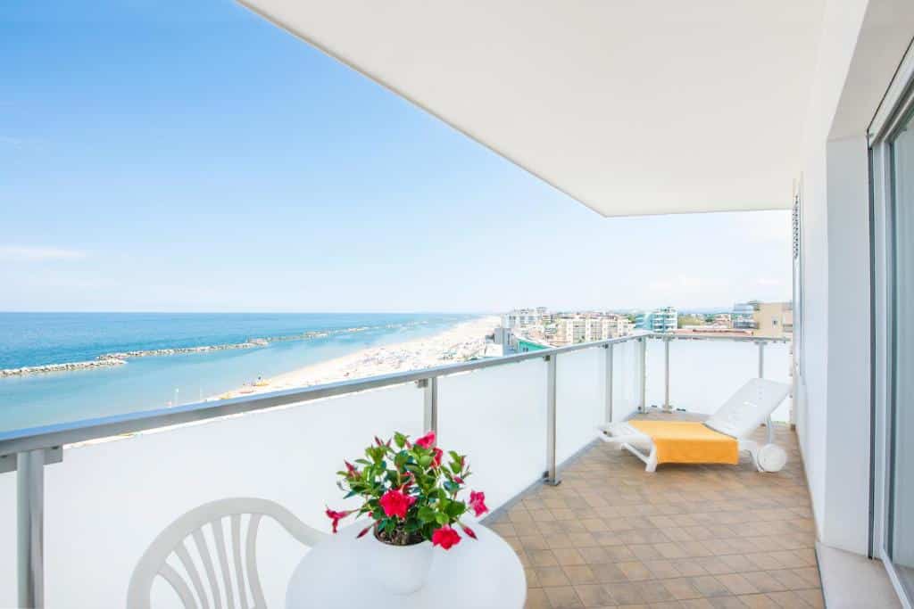 Riposo Panoramico: Le camere sono nidi di comfort semplici e luminosi, ma il vero punto di forza sono i balconi con vista sul mare. Non c’è niente di meglio che concludere la giornata guardando il tramonto che riflette sulle acque dell’Adriatico.