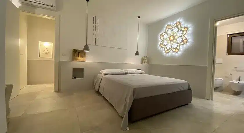 Camere Tematiche: Ogni stanza è un omaggio alla terra salentina — dalla camera Grano alla Olivo, fino alla materica Pietra — arredate con uno stile raffinato che fonde tradizione e design moderno.
