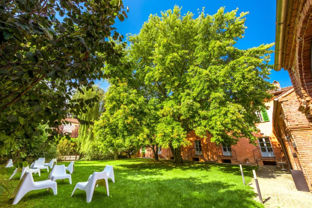 Location per Matrimoni ed Eventi: La Tenuta offre spazi di grande fascino come la Sala Inviziati, capace di ospitare oltre 200 persone, le suggestive Taverne e gli storici Infernot (le tipiche cantine sotterranee piemontesi). I 2000 mq di giardini e il porticato coperto sono scenari perfetti per ricevimenti all’aperto nella bella stagione.