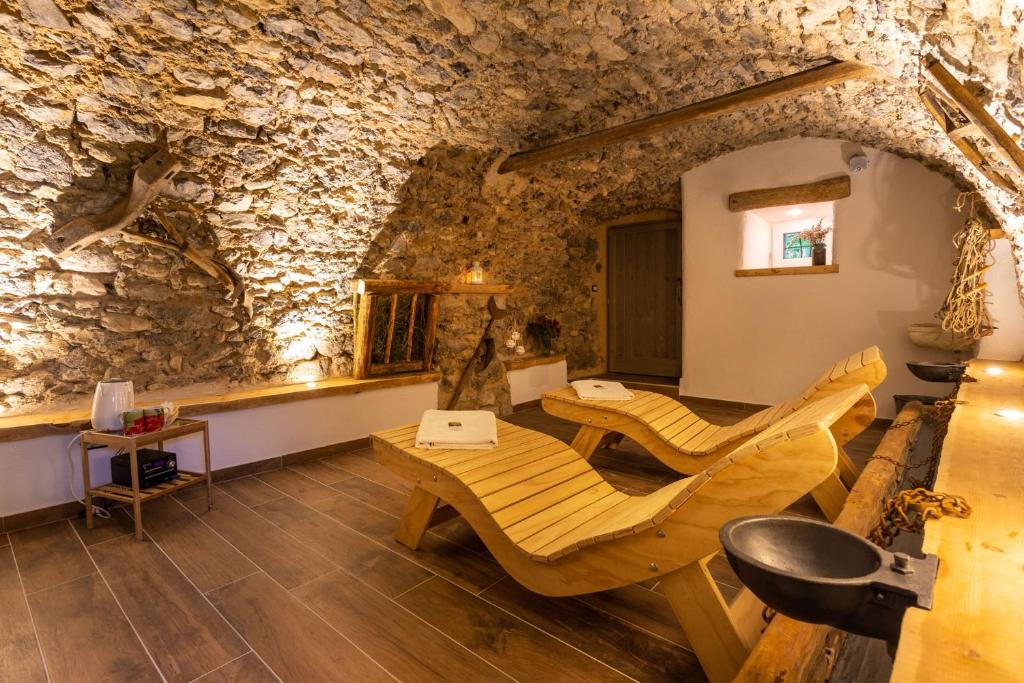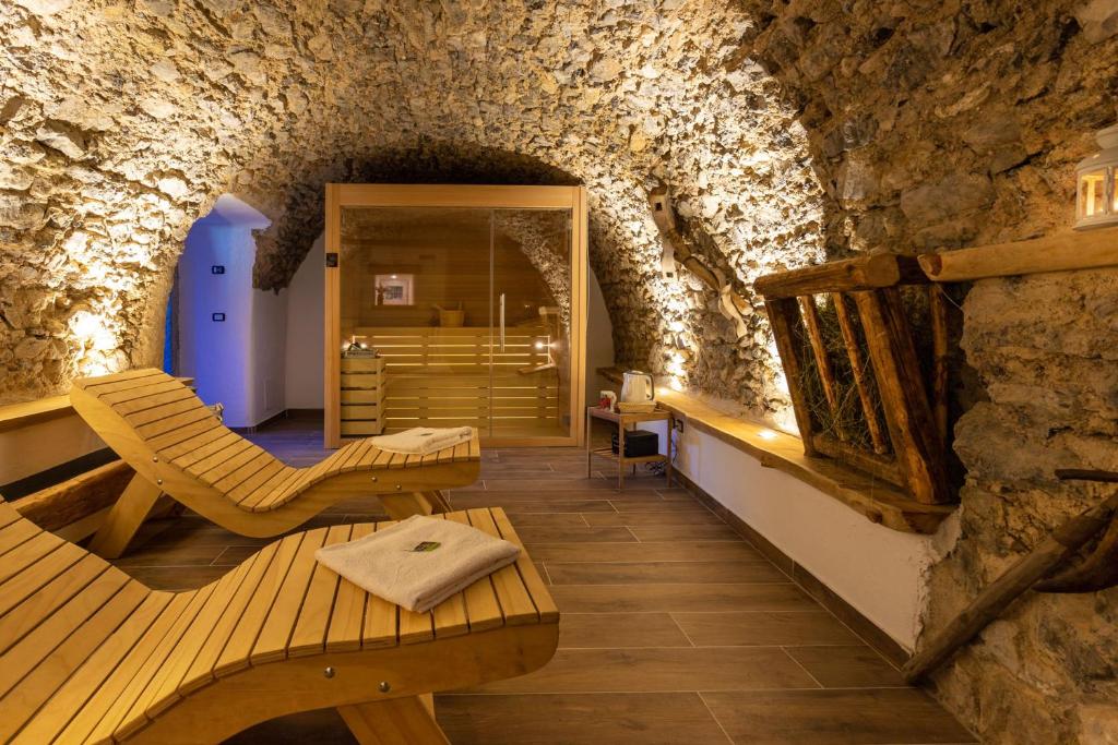 Area Benessere d’Autore: Scopri la nostra Spa ricavata da un antico fienile: un rifugio intimo con sauna dove il calore del legno racconta storie di tradizioni lontane.