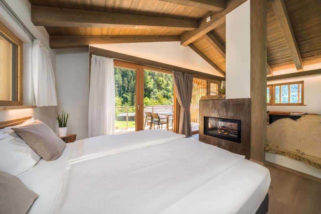 Bungalow Premium: Vivi l’emozione dei nuovi spazi open-space con caminetto a legna trifacciale per serate magiche e, novità assoluta, una vasca idromassaggio esterna privata con cromoterapia per rigenerarti sotto le stelle.